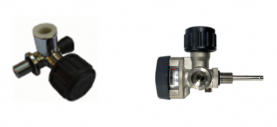 气瓶总成 碳纤维复合气瓶属于压力容器,每一只气瓶都经过特种设备检验机构检测,符合GB/T 28053《铝合金内胆碳纤维全缠绕气瓶》标准要求。 ◆气瓶阀Y型设计,设有安全自锁装置和限流装置。安全自锁装置可避免因使用过程中不慎碰撞或误操作而关闭气瓶阀,限流装置可避免气瓶阀意外断裂时大流量的高压气体不受控制的释放而产生的气瓶冲击危险。 ◆气瓶阀的手轮逆时针旋转为开启,关闭时需要将手轮向内按压到底,然后顺时针旋转。 ◆气瓶阀上设有安全膜片,爆破压力为(37~45)MPa,可防止气瓶内压力过高而变形或爆破。 ◆气瓶阀有不带压力表和带压力表两款可供选择(如下图)。 |