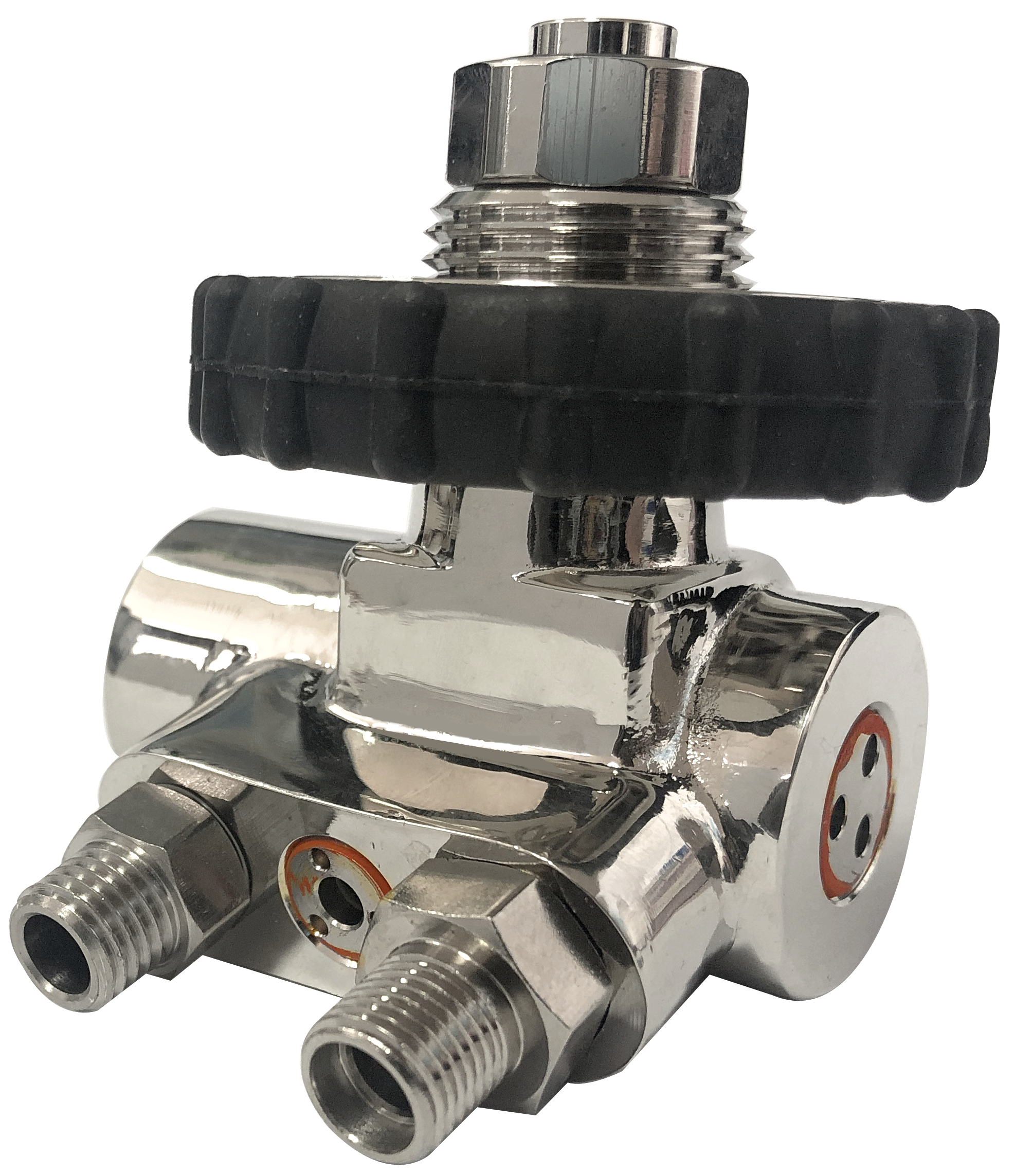 供气阀 ◆供气阀内设有大膜片自动平衡系统,大膜片自动跟踪人的呼吸动作,实现按需供气,并保证面罩内的压力高于周围环境压力。 ◆供气阀前面方形手动关闭按钮,可关闭供气阀的输出气流,停止供气,吸气时由吸力自动开启。 ◆供气阀底部中心圆形的手动强制供气按钮,当手动关闭按钮没被吸开时用手按压此按钮,可实现自动供气;或佩戴者感到气体供给不足时,按下此按钮,供气阀会自动增大供气量。 ◆另外按压此按钮可以放掉中压导管中的余气压力,方便检测和拆卸快速接头。 |